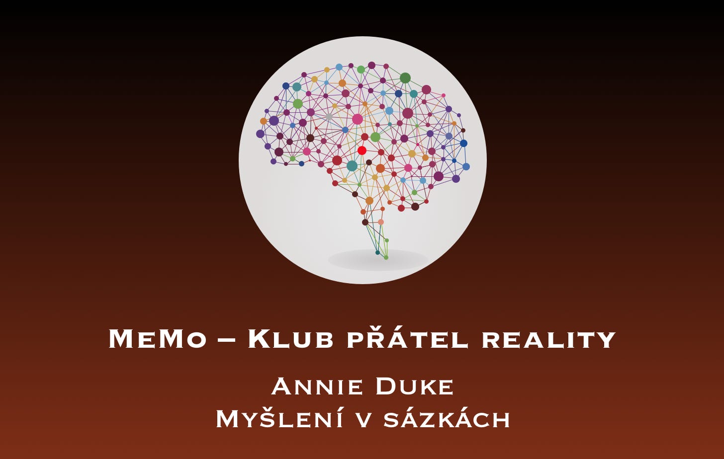 I když je Annie Duke profesionální pokerovou hráčkou, toto není kniha o pokerové strategii nebo hráčství. Je o tom, co Vás může naučit poker o učení a o rozhodování. Praktická řešení, které se naučíte v zakouřených pokerových místnostech se mohou ukázat jako velice dobré strategie pro kohokoli, kdo se snaží zlepšit své rozhodování. Myšlení v sázkách začíná tím, že si uvědomíte, že jsou přesně dvě věci, které rozhodují o tom, jak se Váš život vyvine: kvalita našich rozhodnutí a štěstí.